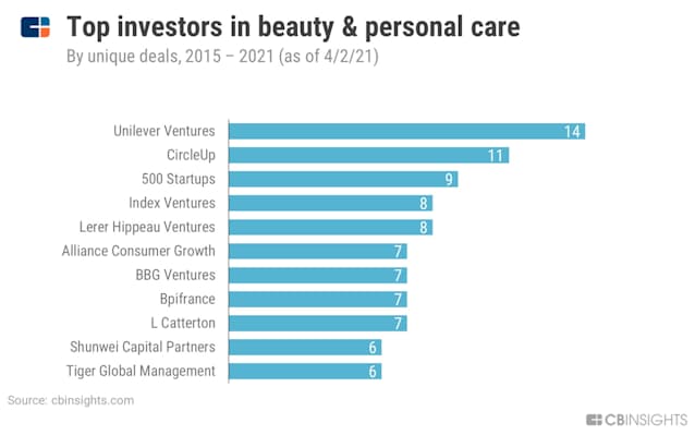 2015年から直近までの合計で美容・パーソナルケア分野への出資件数が最も多かった投資家トップ3は、英ユニリーバ・ベンチャーズ、米サークルアップ、米500スタートアップスです。ユニリーバ・ベンチャーズは特に活発で、14社に出資しています。